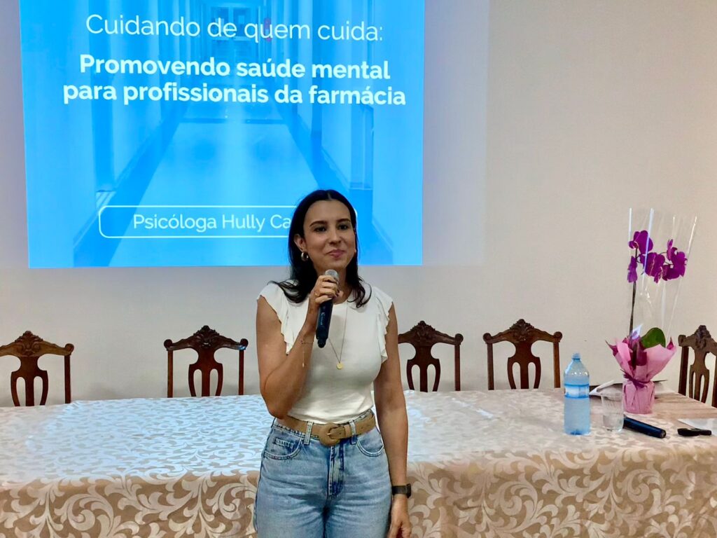 O segundo dia do evento foi marcado pela palestra “Cuidando de quem cuida: promovendo a saúde mental dos profissionais de farmácia”. O tema foi abordado pela psicóloga organizacional e coordenadora de Recursos Humanos, Hully Caldas.