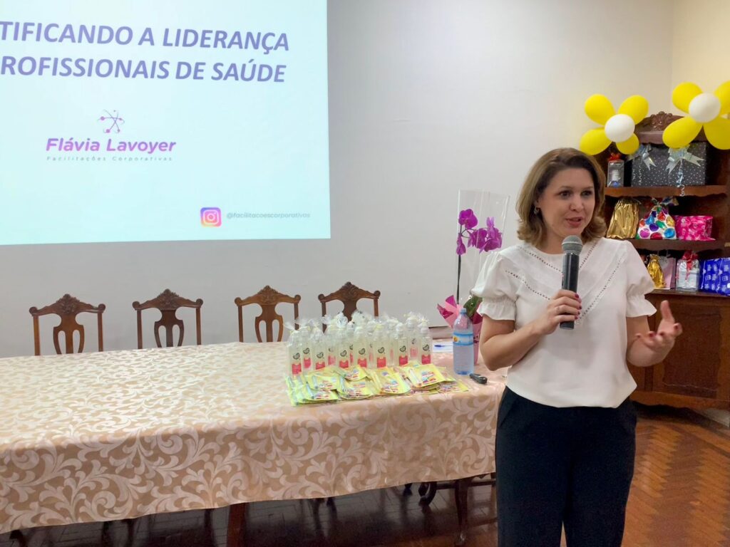 E no encerramento da Semana da Farmácia da Santa Casa de Birigui, a farmacêutica Flávia Lavoyer, que possui 20 anos de vivência na área hospitalar e atua na empresa Facilitações Corporativas, apresentou o tema “Desmistificando a liderança para profissionais de saúde”.