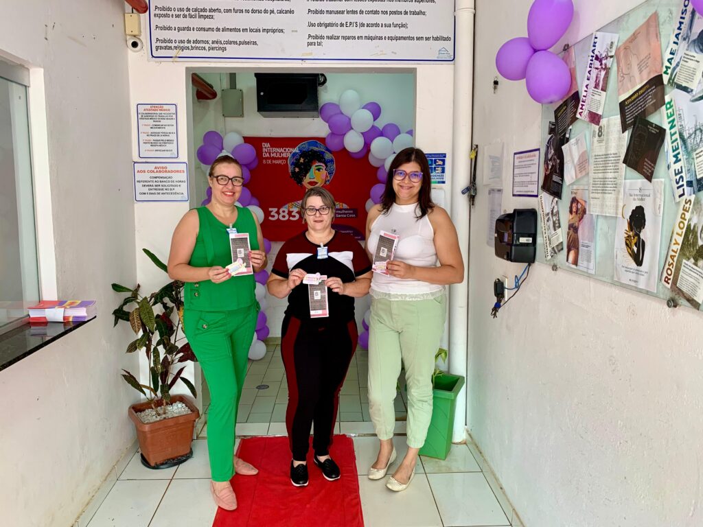 Para comemorar a data, o setor de Recursos Humanos preparou uma decoração especial na entrada dos colaboradores. A equipe também percorreu os setores e fez a entrega de um folder contendo informações de mulheres de destaque na história, além de um card com chocolate.