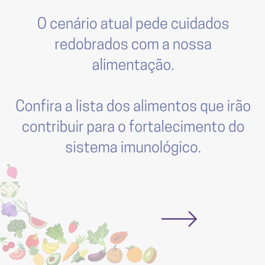 Em tempo de pandemia, é importante ficarmos atentos ao fortalecimento do nosso sistema imunológico e, uma boa alimentação se torna essencial! Ainda não existe nenhuma comprovação científica sobre a relação de determinados alimentos e o combate ao novo coronavírus, porém, uma alimentação saudável garante uma boa nutrição e funcionamento adequado de todo o corpo.