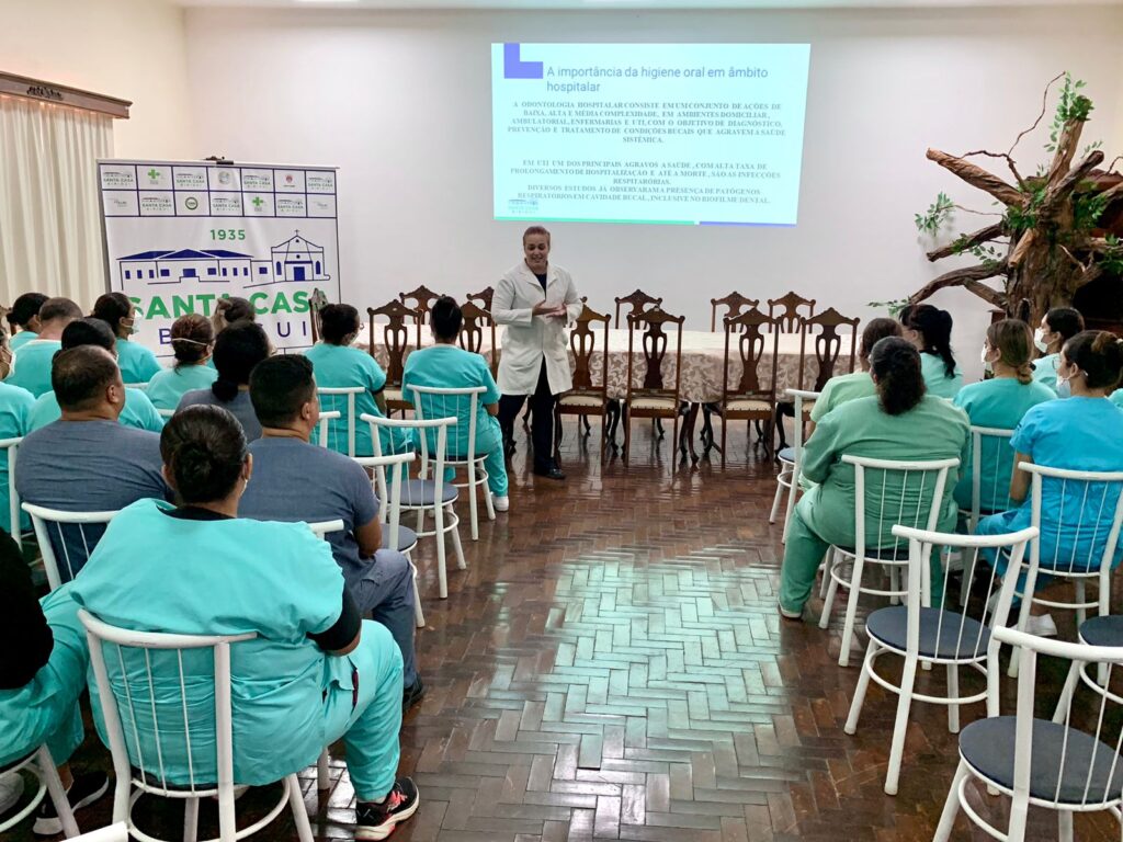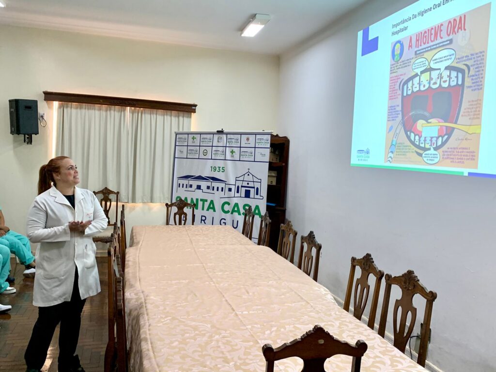 A capacitação foi ministrada pela cirurgiã dentista da instituição, Fernanda Barbiere. Além de destacar a importância da saúde bucal para a segurança dos pacientes internados, ela ainda apresentou técnicas para uma adequada higiene oral.