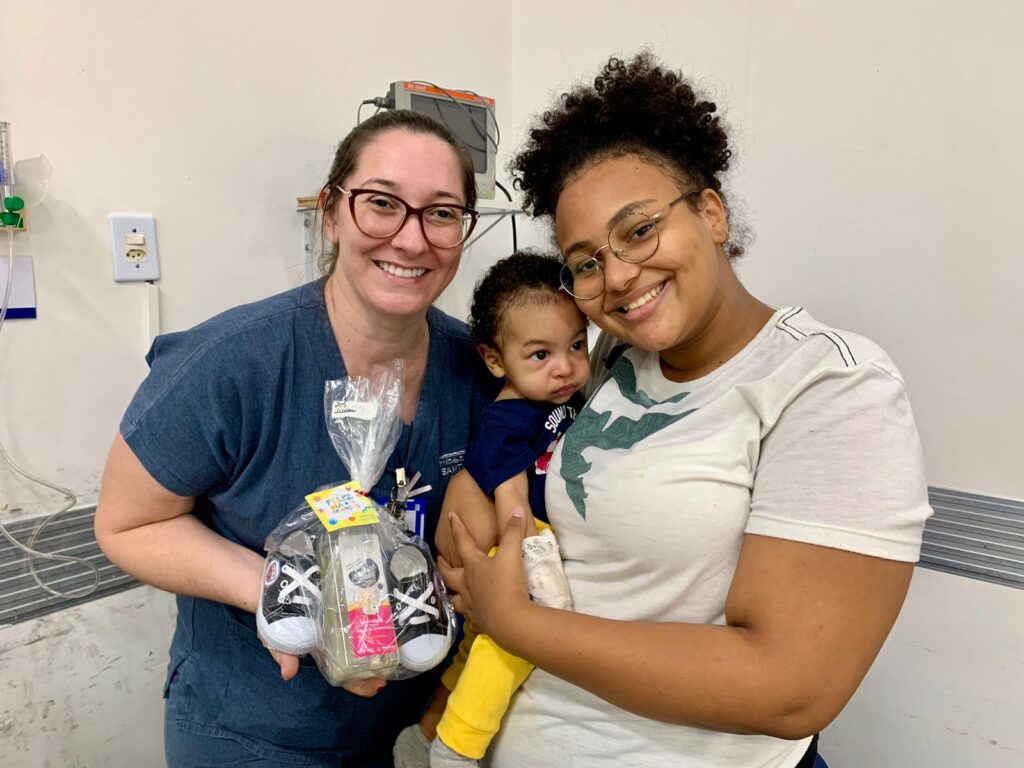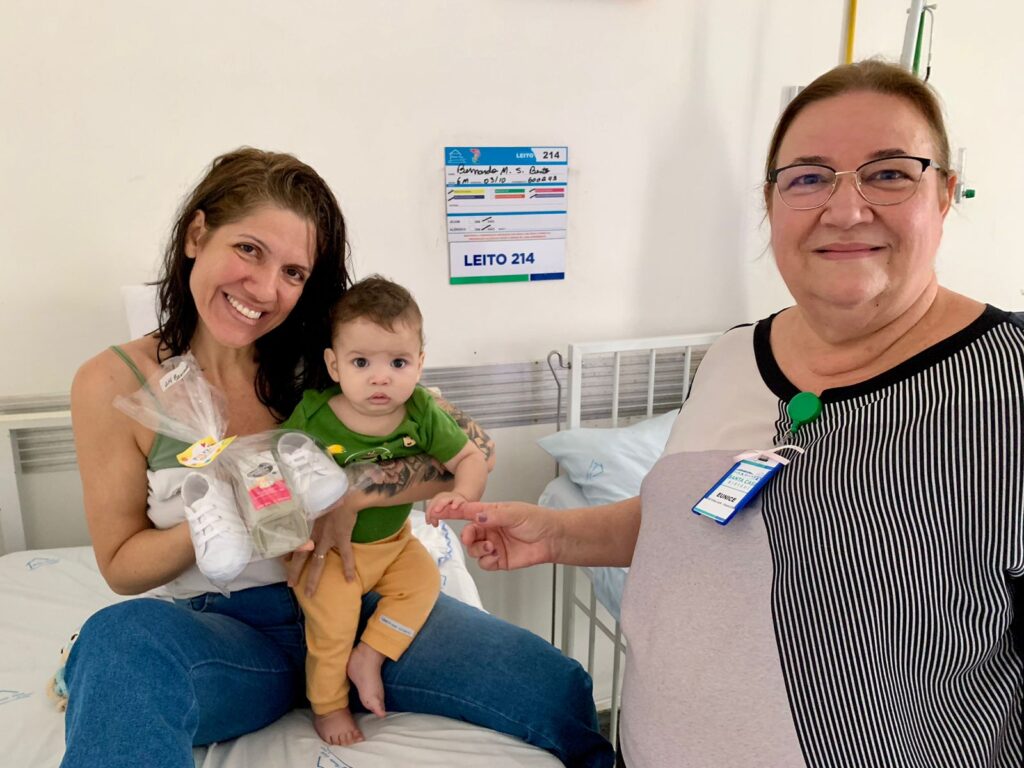Emanuelly David de Souza, 8 anos, foi uma das presentadas em seu leito hospitalar. A paciente, que teve alta nesta segunda-feira e terá a oportunidade de passar o Dia das Crianças em casa ao lado da família, ficou feliz com a surpresa. “Eu gostei muito da sandália, é bem bonita”, disse ela.