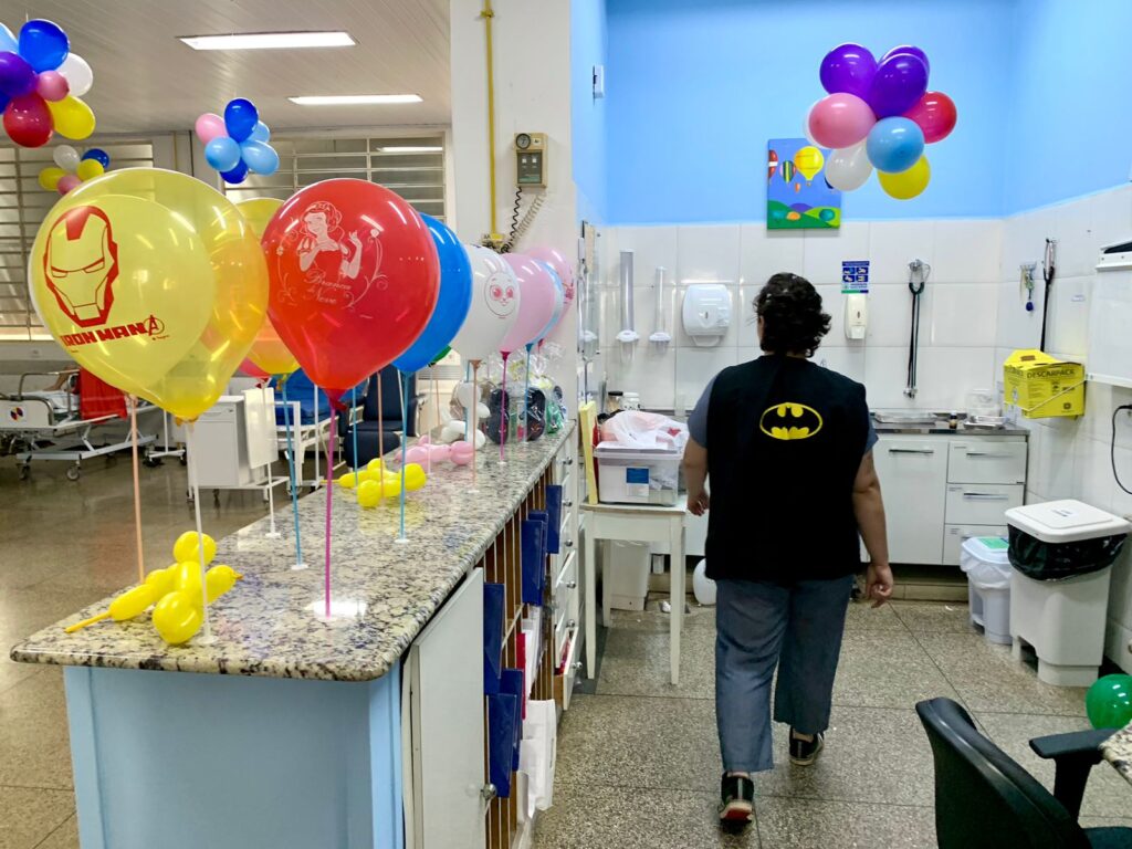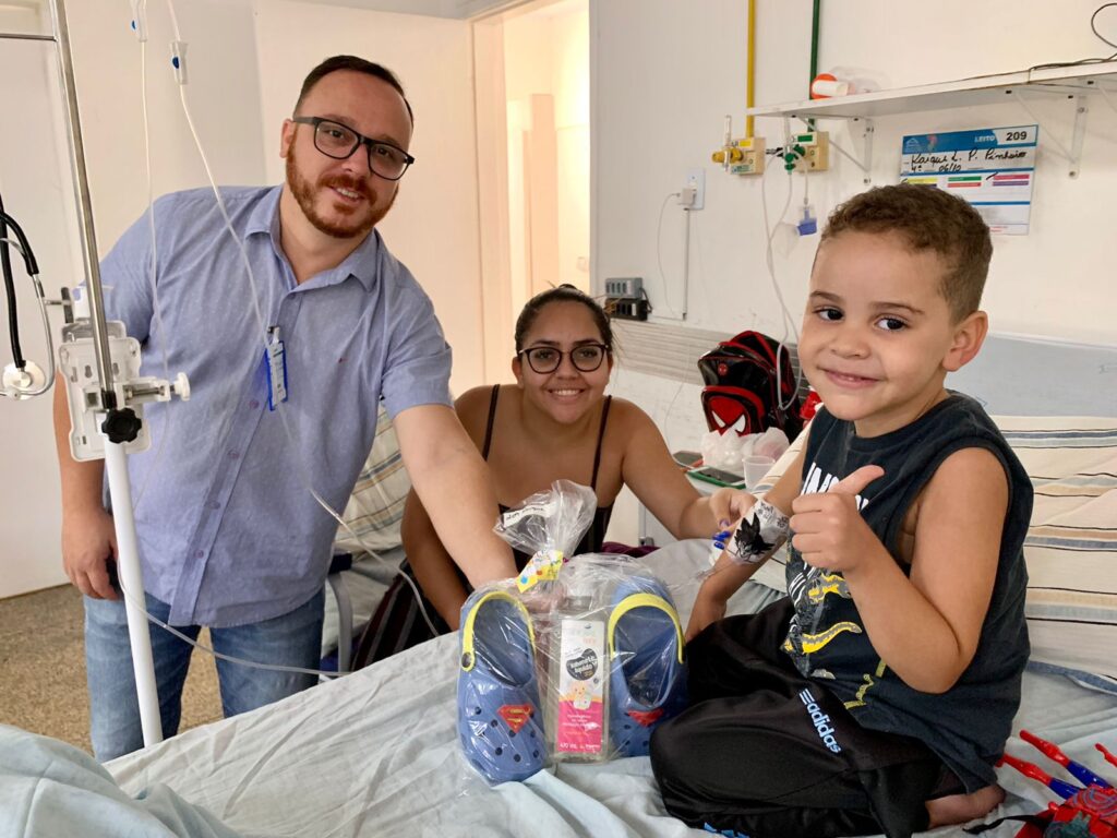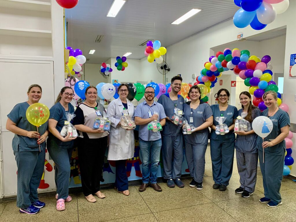 Nesta segunda-feira (9/10), o interventor Alex Brasileiro acompanhou a entrega dos mimos aos pacientes mirins. Também estiveram presentes a diretora Administrativa e Financeira, Eunice Masson; a diretora Assistencial, Bruna Perassoli Teixeira; além de coordenadores e a equipe da pediatria.