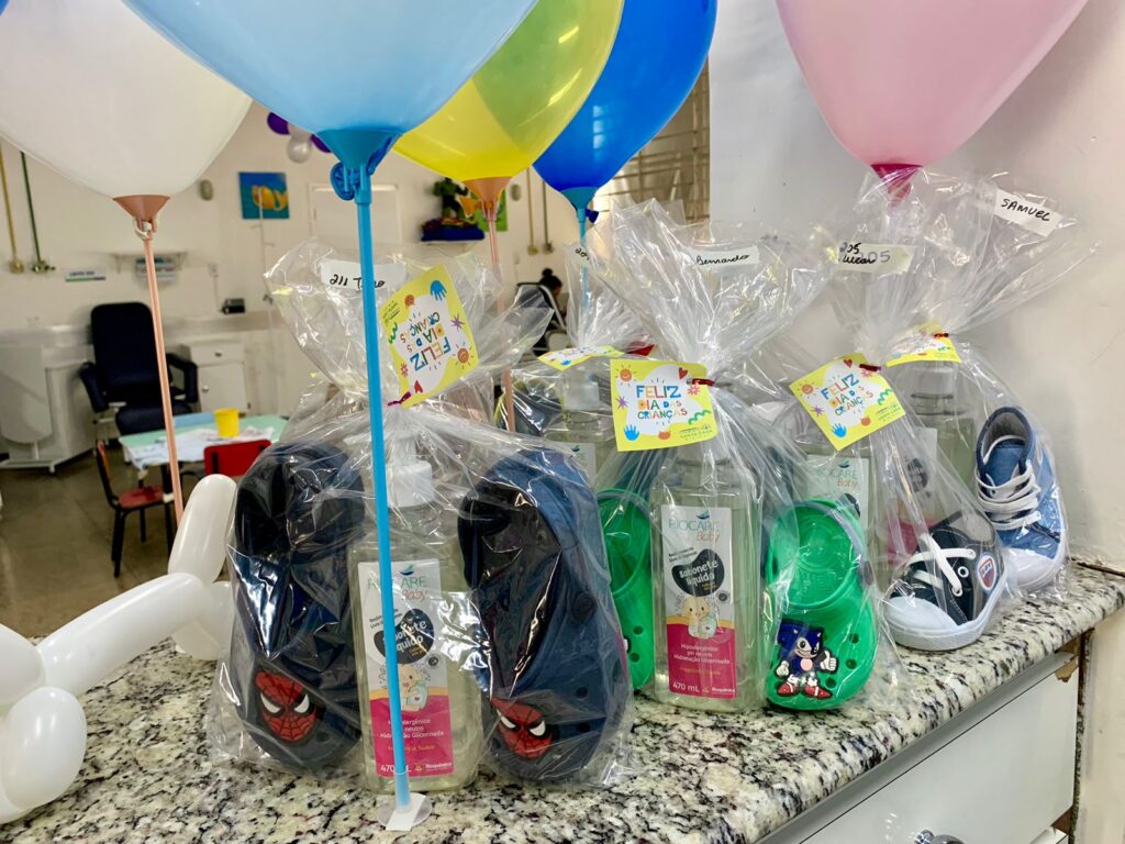 Com o apoio de funcionários do hospital e doações de empresas parceiras, a Santa Casa de Birigui está comemorando o Dia das Crianças de uma forma especial. A garotada internada na ala pediátrica está sendo presenteada com um kit contendo um par de calçado e sabonete líquido.