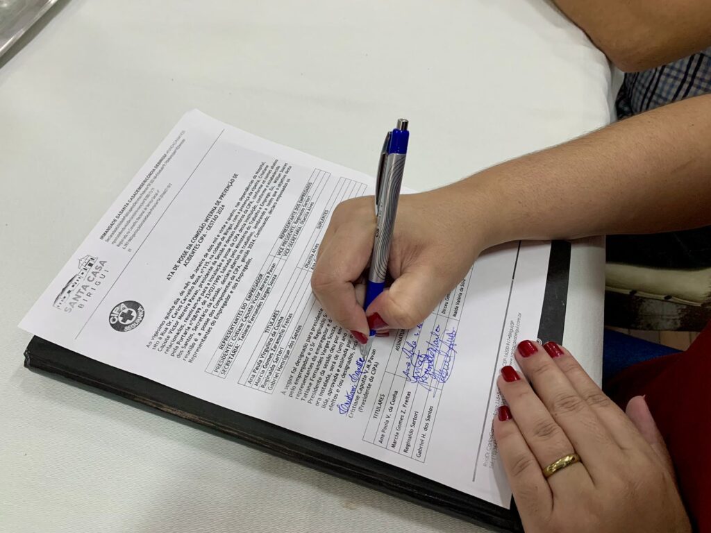 A assistente administrativa Cristiane Caputte Pavan foi reconduzida ao cargo de presidente da Cipa. O vice-presidente é o enfermeiro Reginaldo Sartori. A secretária é a assistente administrativa Tatiane Fernandes Varges Souza e a vice-secretária é a supervisora da lavanderia Otacilia Alves.