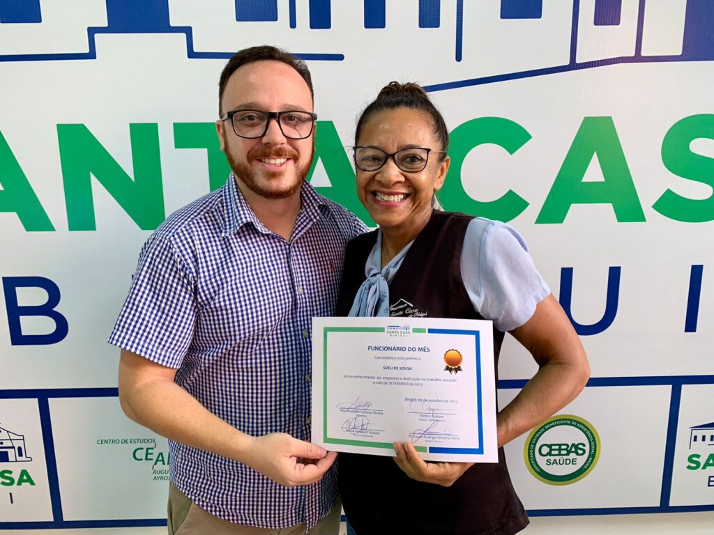 Também participaram do anúncio do funcionário do mês e a entrega dos certificados a diretora Administrativa e Financeira, Eunice Masson; a diretora Assistencial, Bruna Perassoli Teixeira; e a gestora do departamento de Recursos Humanos, Cláudia Janaina Figueira.
