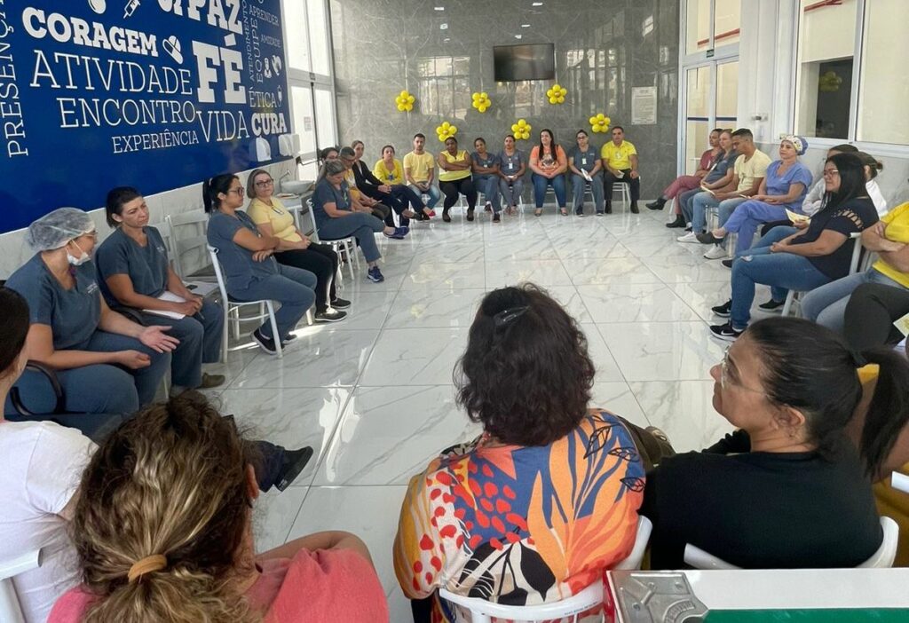 Roda de conversa realizada no dia 22 de setembro, no espaço de convivência da Santa Casa de Birigui, destacou a importância da qualidade de vida e da saúde mental para colaboradores. A atividade aconteceu em alusão à campanha Setembro Amarelo, que recebe o lema “Se precisar, peça ajuda!”.